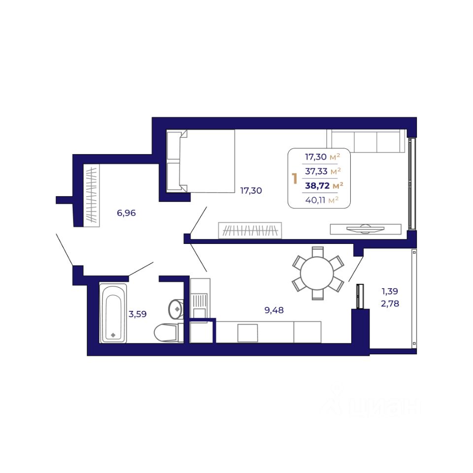 Продаётся 1-комнатная квартира в строящемся доме (Литер 5 (квартал 7)), срок сдачи: I-кв. 2027, общей площадью 38.72 кв.м., на 16 этаже. Современный жилой комплекс "Паруса"