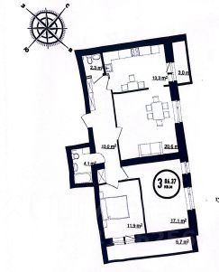 Жилая площадь-49.55 кв.м ,площаль по комнатам :зал -20.6 кв.м ,спальня 1-17.05 кв.м ,спальня 2-11.87 кв.м , кухня- 13.3 кв.м ,прихожая 13,0 кв.м ,сан узел-4,05 кв.м +2,25 кв.м ,есть лоджия и балкон .