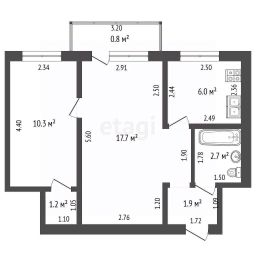 Площадь: 40,6 м²