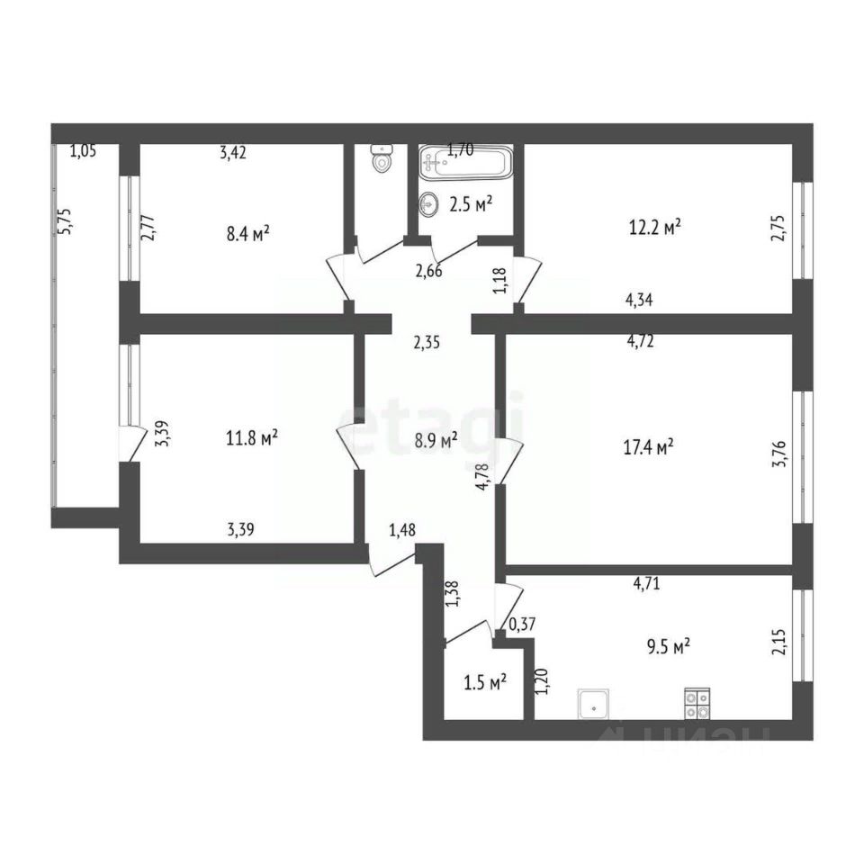 9,5 м²