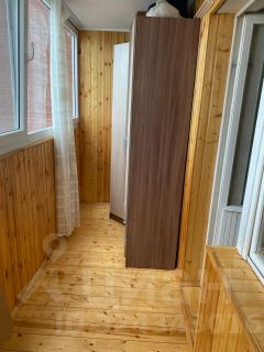 В квартире сделан косметический ремонт. На полу ламинат, в санузеле свежий ремонт, в комнате и коридоре натянут потолок, везде новые люстры. Так же есть гардеробная 2,7 кв.м и большая, обшитая деревом, застекленная лоджия.