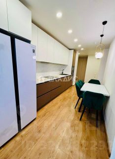Большая гостиная 24м². Идеальное пространство для семьи и друзей. Кухонная зона 11м2. Остается качественная кухня с премиальной встроенной техникой (варочная панель, духовой шкаф, встроенная микроволновая печь, посудомоечная машина, вытяжка).