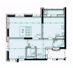 Продаётся 2-комнатная квартира в строящемся доме (Литер 2), срок сдачи: I-кв. 2026, общей площадью 70.89 кв.м., на 8 этаже. Современный жилой комплекс "Паруса"