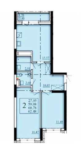 Продаётся 2-комнатная квартира в строящемся доме (Литер 2), срок сдачи: I-кв. 2026, общей площадью 60.78 кв.м., на 18 этаже. Современный жилой комплекс "Паруса"