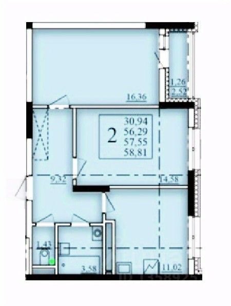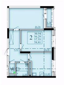 Продаётся 2-комнатная квартира в строящемся доме (Литер 2), срок сдачи: I-кв. 2026, общей площадью 57.55 кв.м., на 13 этаже. Современный жилой комплекс "Паруса"