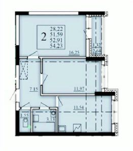 Продаётся 2-комнатная квартира в строящемся доме (Литер 2), срок сдачи: I-кв. 2026, общей площадью 52.91 кв.м., на 2 этаже. Современный жилой комплекс "Паруса"