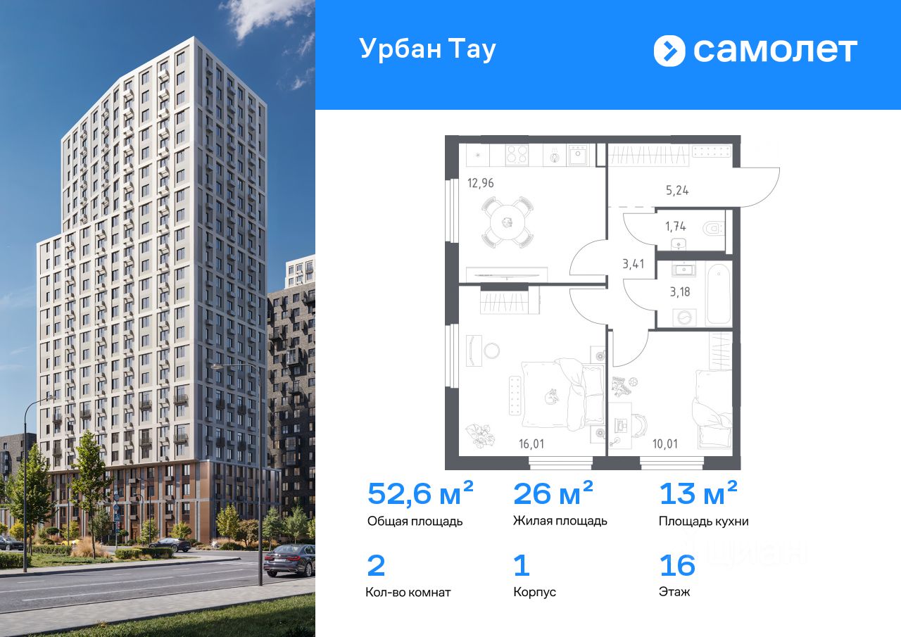 Строим кварталы для жизни с заботой о будущем. Предлагается 2-комнатная квартира комфорт-класса 52,55 кв.м в корпусе 1 на 16 этаже, в ЖК "Урбан Тау"
