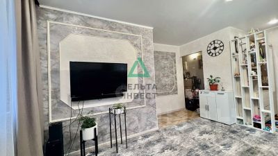 • Стены в квартире выровнены под маяк, качественные обои, декоративные вставки на обоях , натяжные потолки, пластиковые окна, на полу линолеум, совмещенная ванная отделана кафелем.