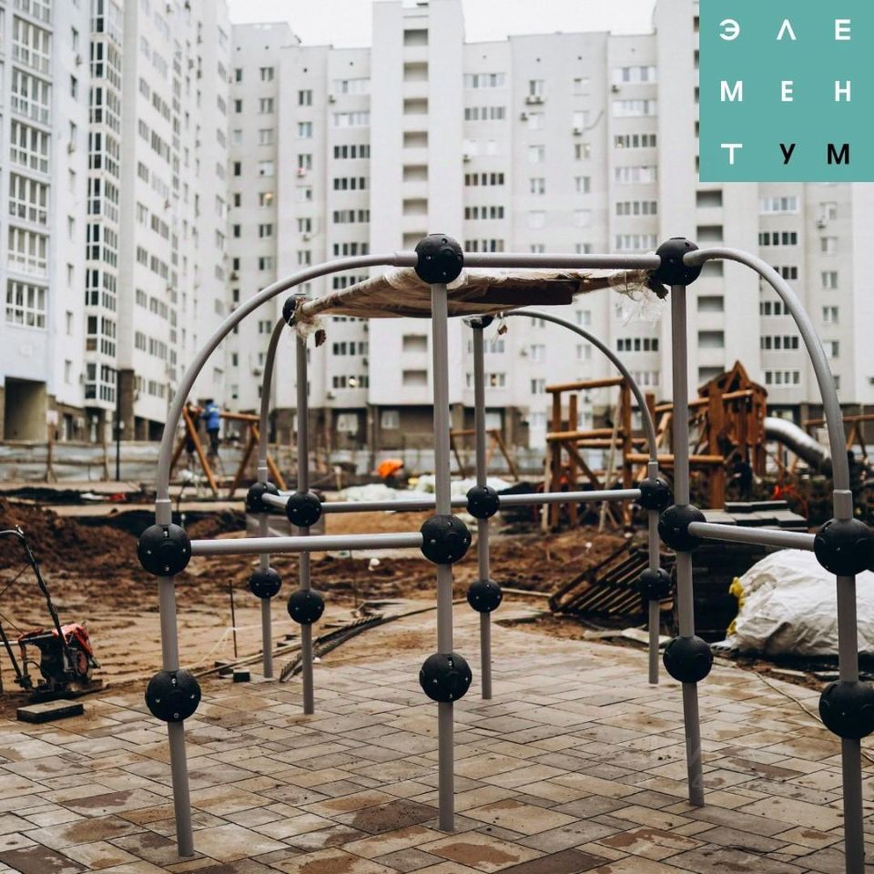 Во дворе оборудованы Workout зоны, детская площадки, спортивные дорожки.