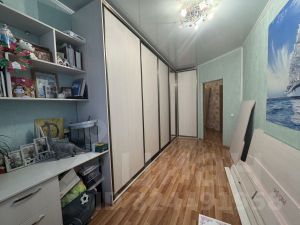 Квартира теплая, окна все смотрят на улицу видовая, высокие потолки 2,7 м. На полу ламинат 33 класса, на кухне плитка - тёплый пол, а также тёплый пол в коридоре и санузеле, натяжной потолок по всей квартире. Санузел облицован керамогранитом, установлен бойлер для воды. Балкон обшит и застеклён. Стеклопакеты все поменяны с аэробокс проветриванием.