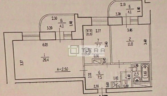 Кухня: Посередине квартиры, 7.8 кв. м