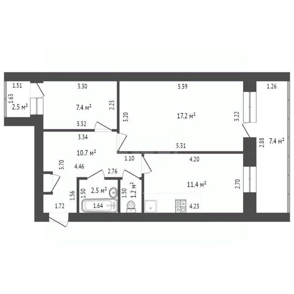 Особенностью объекта являются две лоджии: одна примыкает к залу протяженностью 6 метров, вторая выходит с кухни, что позволяет разнообразить их использование.