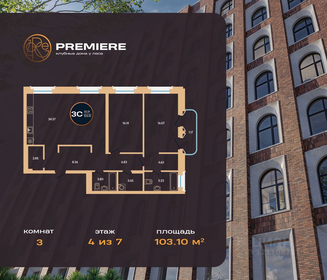 Продается 3-к-комнатная квартира в ЖК Зорге. Премьер от ГК "Жилстройинвест". 4-й этаж 8-этажного жилого дома, общая площадь 103.1 кв.м., жилая площадь 32.21 кв.м.