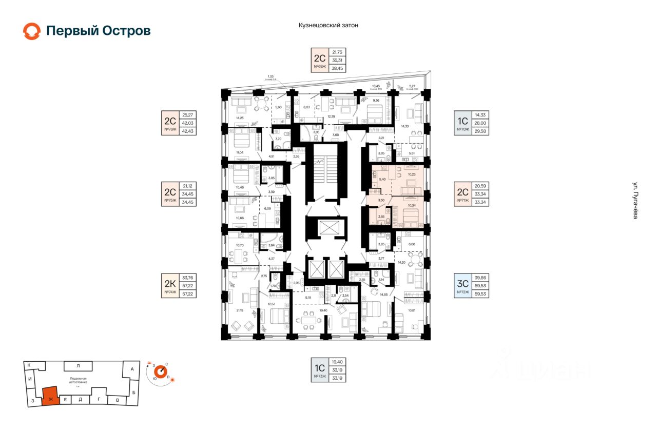 Литер 1, Секция Ж. 12-й этаж 23- этажного жилого дома