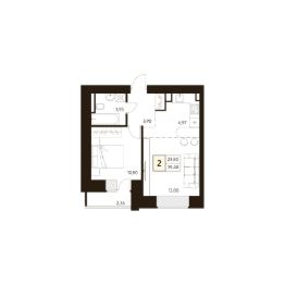 Продаётся 1-комнатная квартира в строящемся доме (Дом 2), срок сдачи: I-кв. 2026, общей площадью 39.48 кв.м., на 13 этаже.