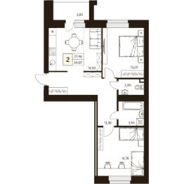Продаётся 2-комнатная квартира в строящемся доме (Дом 3), срок сдачи: IV-кв. 2025, общей площадью 64.07 кв.м., на 4 этаже.
