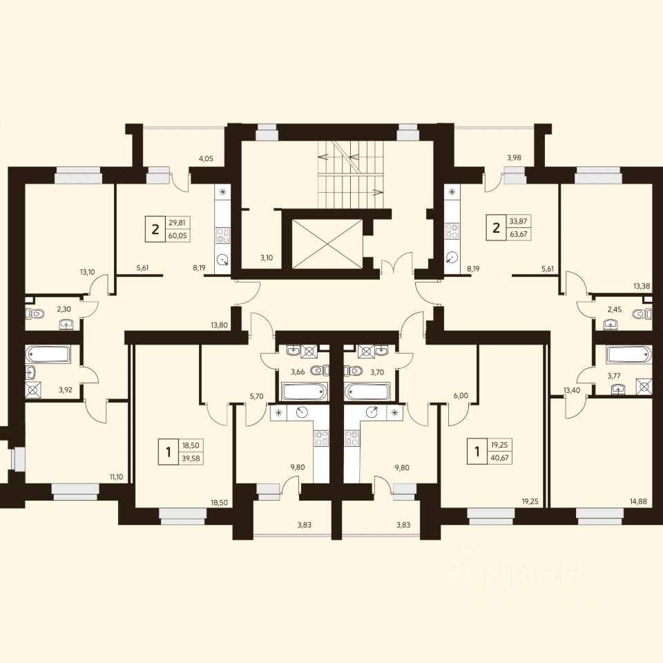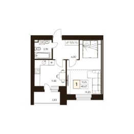 Продаётся 1-комнатная квартира в строящемся доме (Дом 3), срок сдачи: IV-кв. 2025, общей площадью 40.67 кв.м., на 9 этаже.