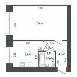 Общая площадь квартиры составляет 31 кв.м.