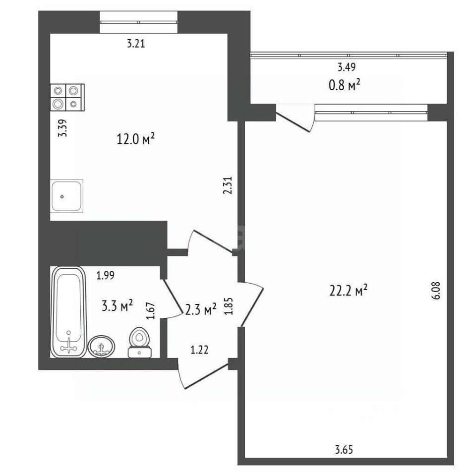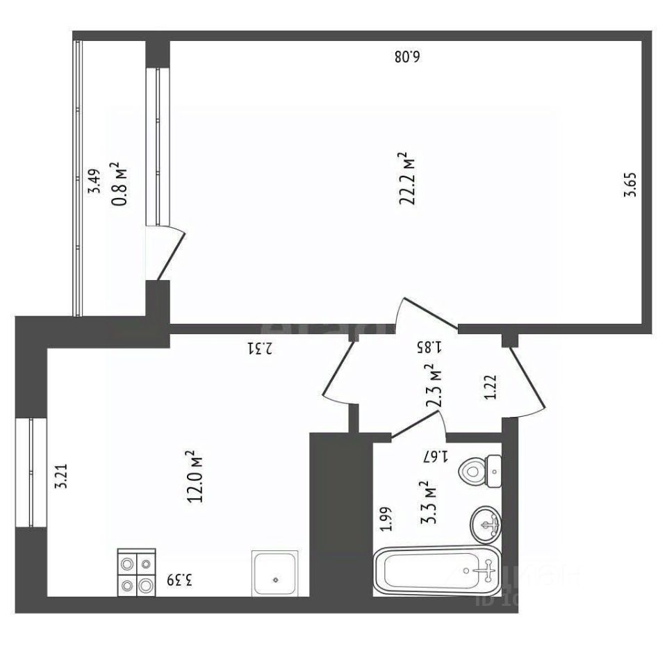 22,2 м²