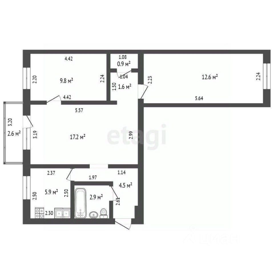 55,4 м²