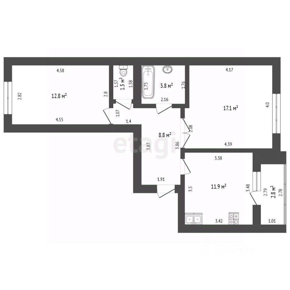 Площадь 55,9 кв.м.