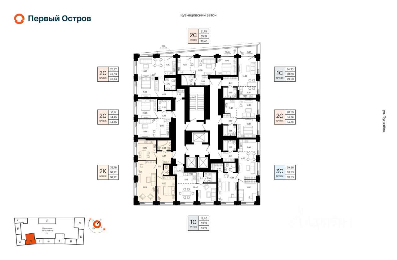 Литер 1, Секция Ж. 12-й этаж 23- этажного жилого дома