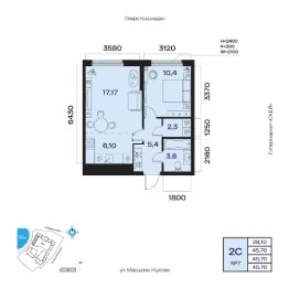 Общая площадь 45.70кв.м.;