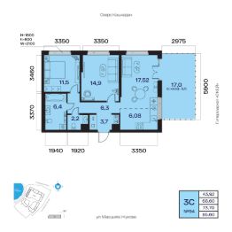 Общая площадь 73.70кв.м.;