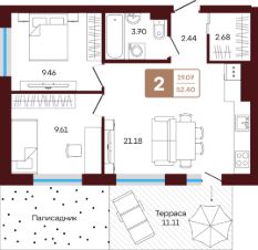 Продаётся 2-комнатная квартира в строящемся доме (литер 1), срок сдачи: III-кв. 2026, общей площадью 52.4 кв.м., на 1 этаже. Новый жилой комплекс "ЯРАТАУ" от застройщика "СЗ НВ - 1" расположен по адресу Россия, Республика Башкортостан, Иглинский район, село Акбердино, Газпромовская улица.