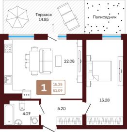 Продаётся 1-комнатная квартира в строящемся доме (литер 1), срок сдачи: III-кв. 2026, общей площадью 51.09 кв.м., на 1 этаже. Новый жилой комплекс "ЯРАТАУ" от застройщика "СЗ НВ - 1" расположен по адресу Россия, Республика Башкортостан, Иглинский район, село Акбердино, Газпромовская улица.