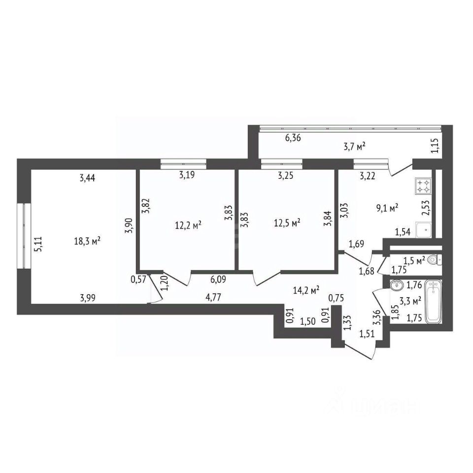 Продается просторная 3-х комнатная квартира на 15/18 этаже кирпично-монолитного дома с отличными видовыми характеристиками в Центре УФЫ! Общая площадь 71.1 м2