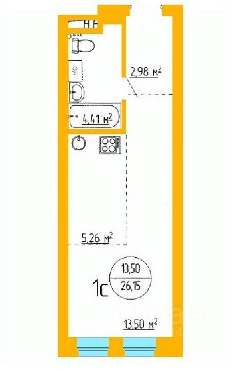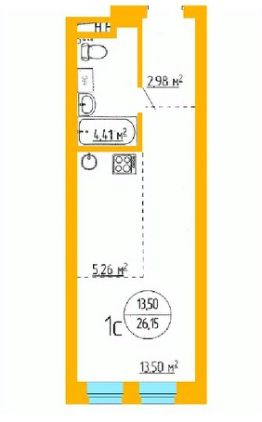 Общая площадь26,29 м²