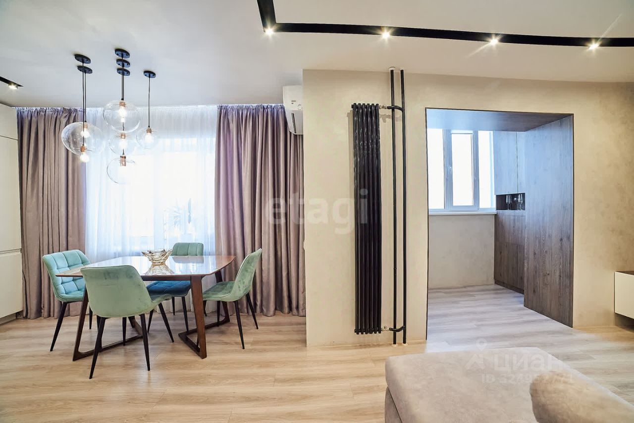 Кухня-гостиная 29,9 кв.м. При продаже остается кухонный гарнитур со встроенной техникой, кроме микроволновки, духового шкафа и варочной поверхности.