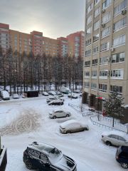 Из окон открывается вид на тихий двор, где виднеется спортивная и детская площадки, а также открытая парковка.