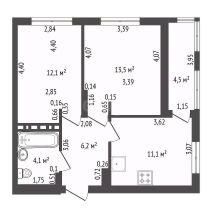 Общая площадь 51,5 кв.м.