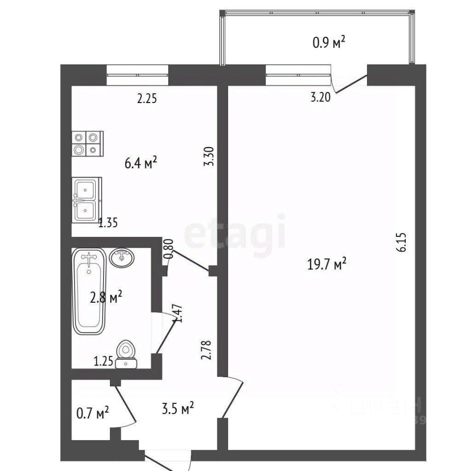 6,4 м²