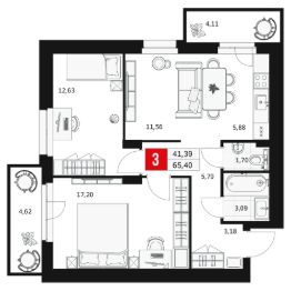 65,4 м²