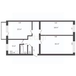 - жилые комнаты 13.5 кв.м., 18.2 кв.м., 14.0 кв.м.;