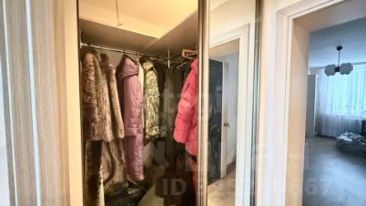 Вместительная гардеробная с зеркальными дверьми купе.