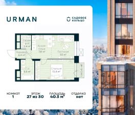 Продается квартира в ЖК Urman City с 1 спальней на 27 этаже 30 этажного дома. Общая площадь: 40.3 кв.м. Высота потолков 2.95 м. Срок сдачи 1 квартал 2028 г. Эскроу-счет. Застройщик ГК "Садовое кольцо".