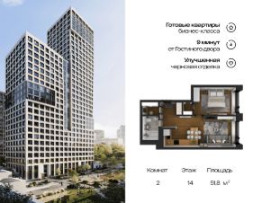 Литер 2, Секция 1. 14-й этаж 25- этажного жилого дома