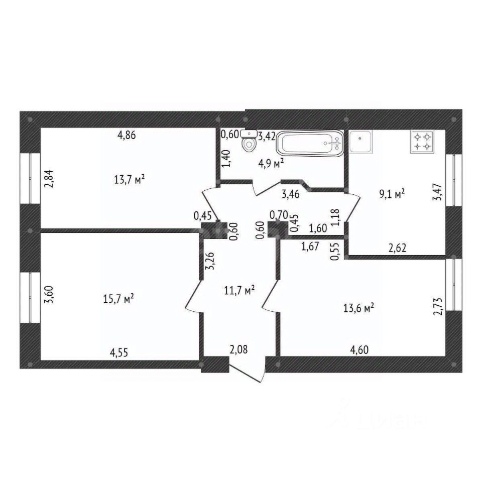 Общая площадь: 68,7 кв. м
