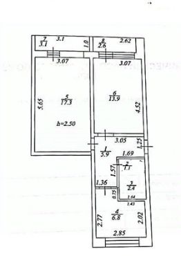 Описание: общая площадь 53.2кв. м., жилая 31,2 кв. м. кухня 6,8 кв.м.