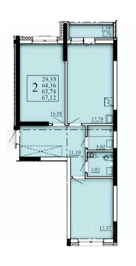 Продаётся 2-комнатная квартира в строящемся доме (Литер 2), срок сдачи: I-кв. 2026, общей площадью 65.74 кв.м., на 2 этаже. Современный жилой комплекс "Паруса"