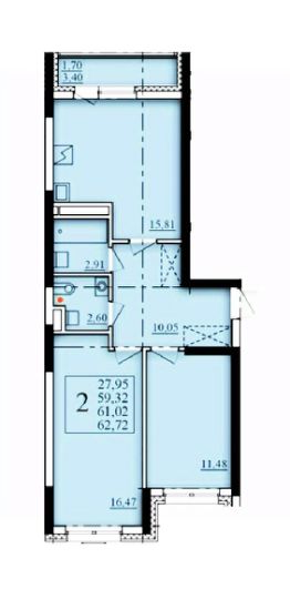 Продаётся 2-комнатная квартира в строящемся доме (Литер 2), срок сдачи: I-кв. 2026, общей площадью 61.02 кв.м., на 14 этаже. Современный жилой комплекс "Паруса"