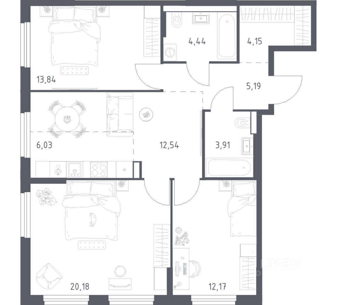 Строим кварталы для жизни с заботой о будущем. Предлагается 3-комнатная квартира комфорт-класса площадью 82.45 кв.м в корпусе 1КВ на 12-м этаже, в жилом комплексе "Урбан Тау".