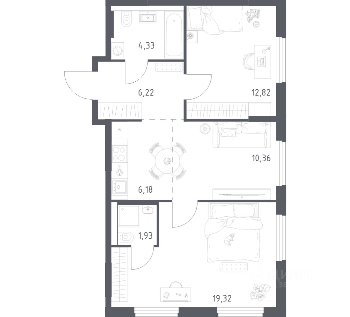 Квартиры без отделки. Доступность опции "отделка" и возможность комплектации мебелью и декором уточняйте у застройщика.