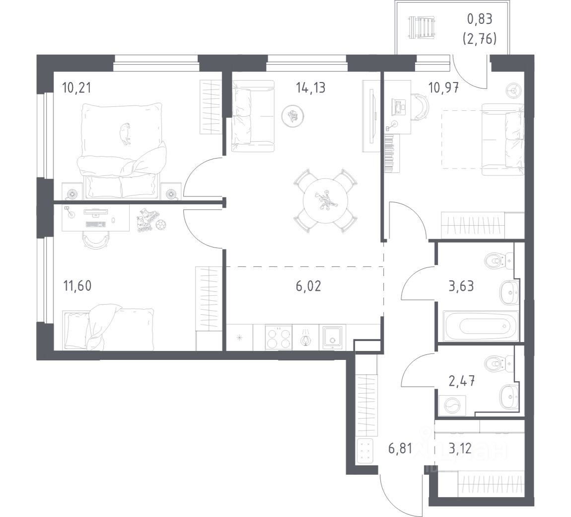 Строим кварталы для жизни с заботой о будущем. Предлагается 3-комнатная квартира комфорт-класса площадью 69.79 кв.м в корпусе 1КВ на 3-м этаже, в жилом комплексе "Сабанеева 125".