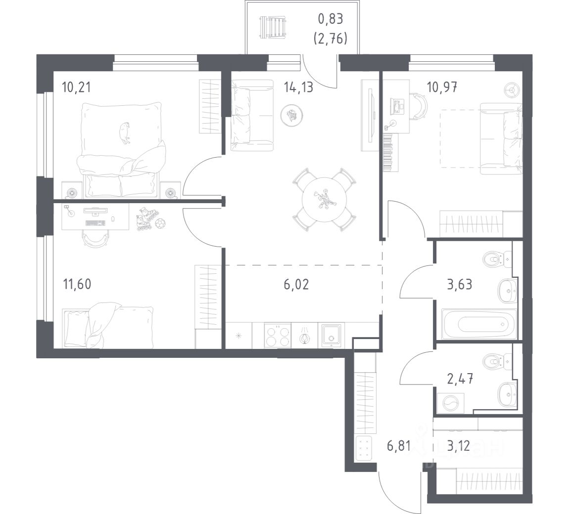 Строим кварталы для жизни с заботой о будущем. Предлагается 3-комнатная квартира комфорт-класса площадью 69.79 кв.м в корпусе 1КВ на 6-м этаже, в жилом комплексе "Сабанеева 125".