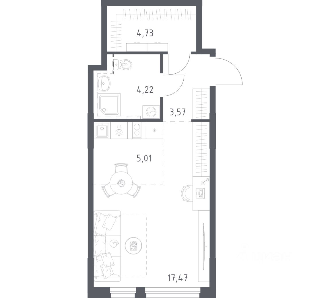 Строим кварталы для жизни с заботой о будущем. Предлагается студия комфорт-класса площадью 35.0 кв.м в корпусе 1КВ на 3-м этаже, в жилом комплексе "Сабанеева 125".